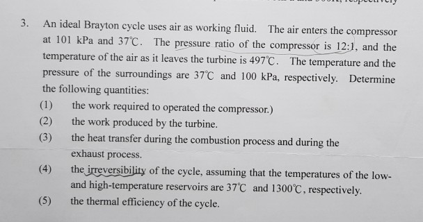 Solved 3 An Ideal Brayton Cycle Uses Air As Working Flui