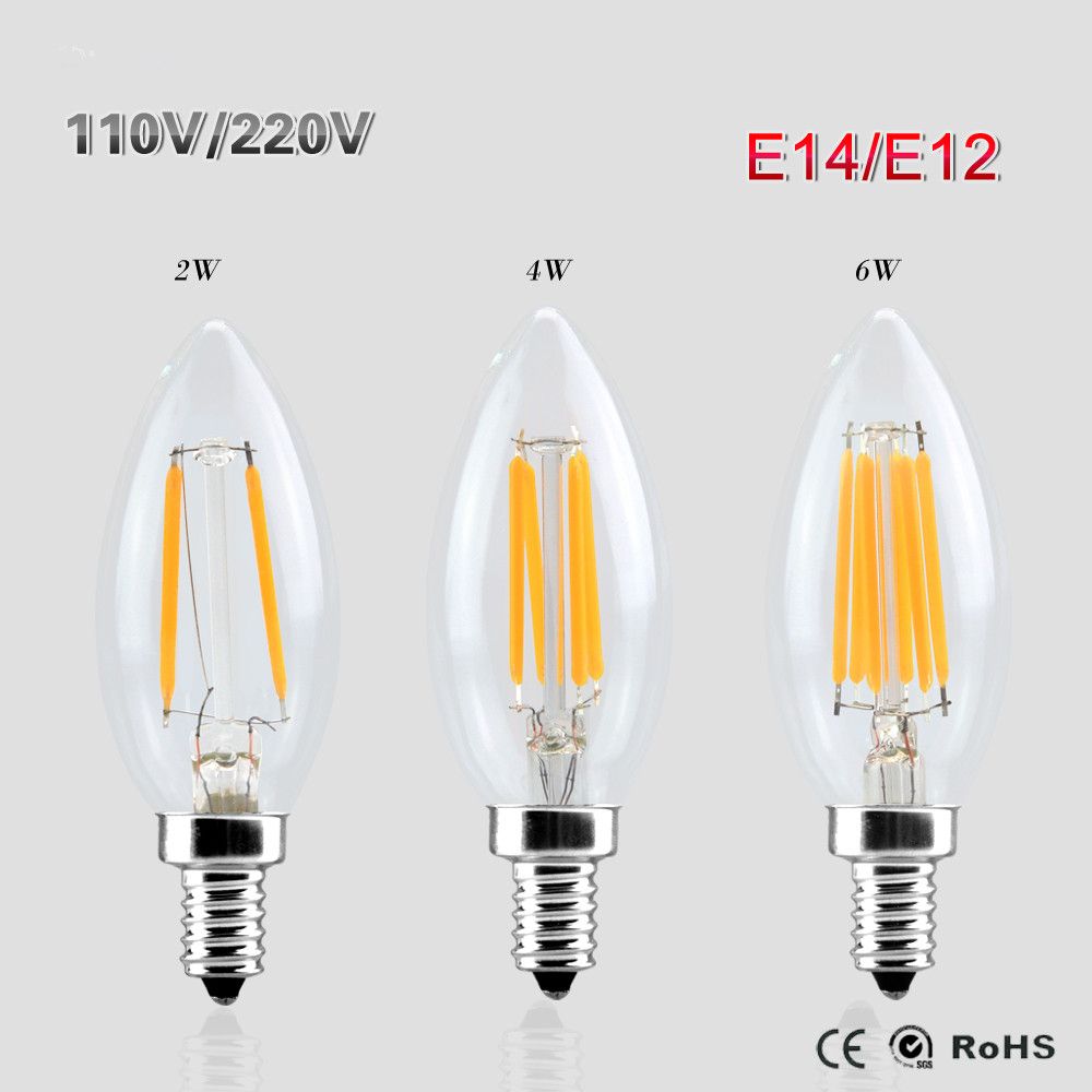E14 E12 Led Light 110v 220v 4w Led Filament Bulb Candle Light