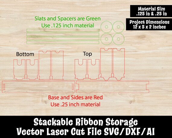 Stackable Ribbon Storage Vector Laser Cut File Svg Dxf Ai Etsy