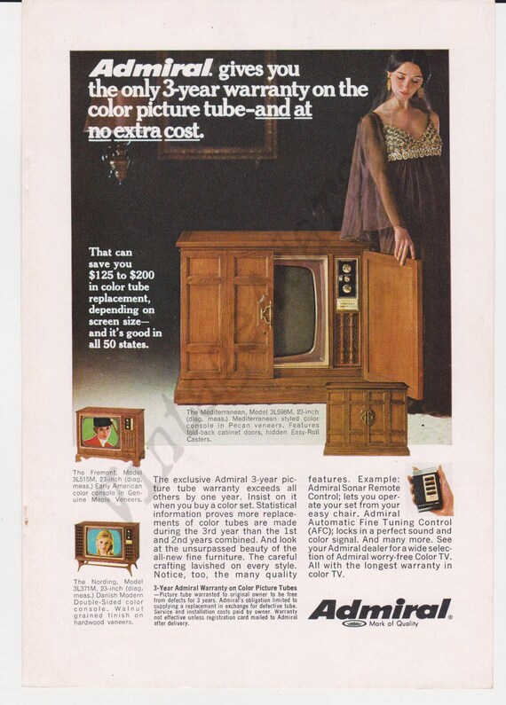 Admiral Color Console Tv Original 1969 Vintage Color Print Etsy