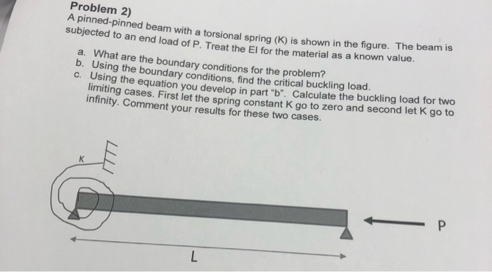 Problem 2 A Pinned Pinned Beam With A Torsional S Chegg Com