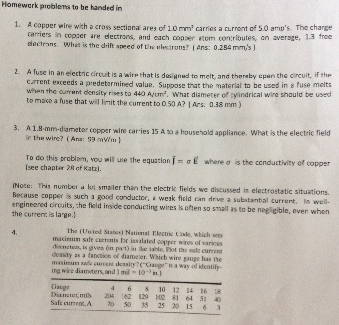 Solved Homework Problems To Be Handed In 1 A Copper Wire