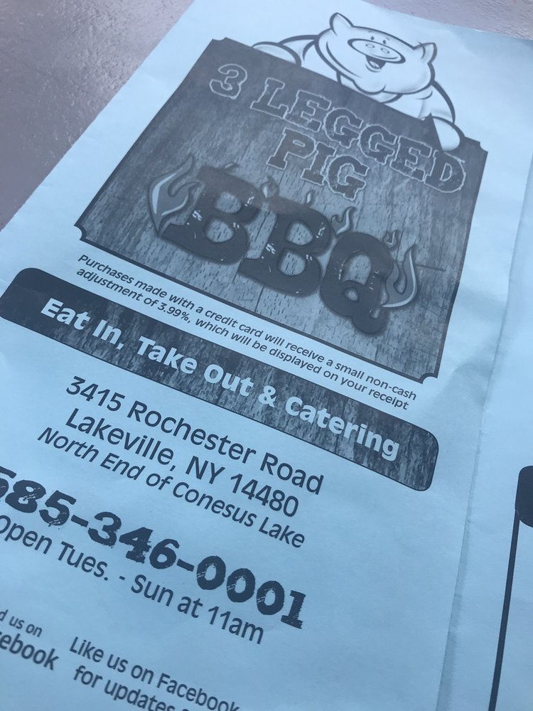3 Legged Pig Bbq Home Lakeville New York Menu Prices