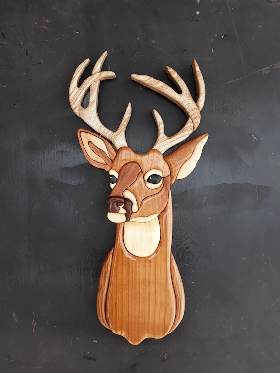 Point Buck Intarsia Intarsia Wooden Art Poplar Wall Decor Etsy