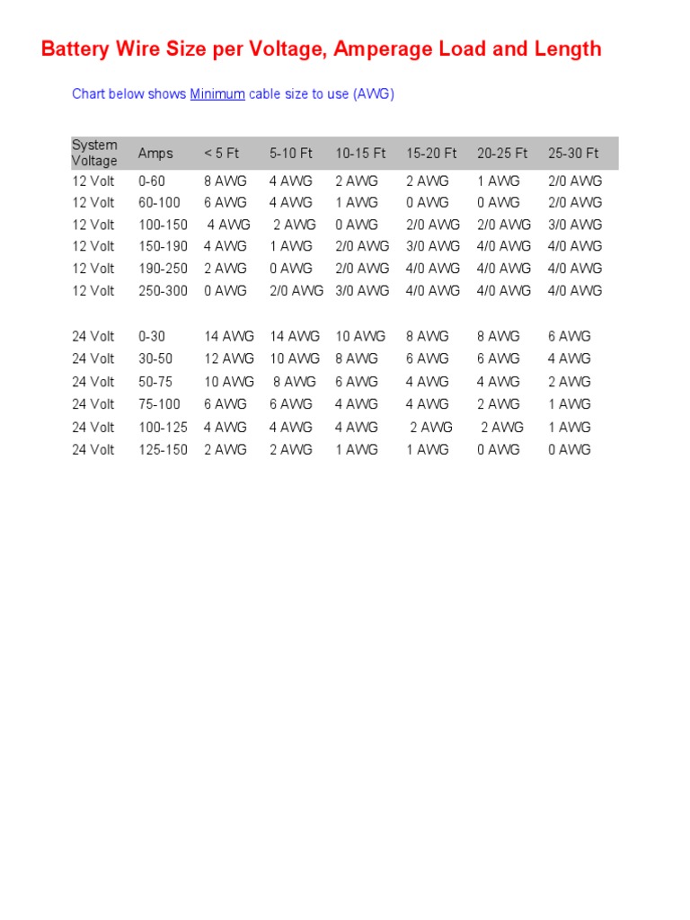 Battery Wire Size Per Voltage