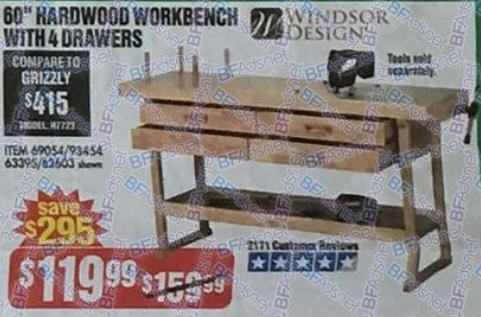 Black Friday Deal Windsor Design 60 In 4 Drawer Hardwood Workbench