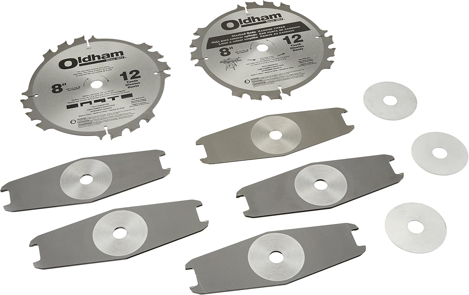 Oldham 8005224 8 Inch 12t Carbide General Purpose Stacked Dado Set