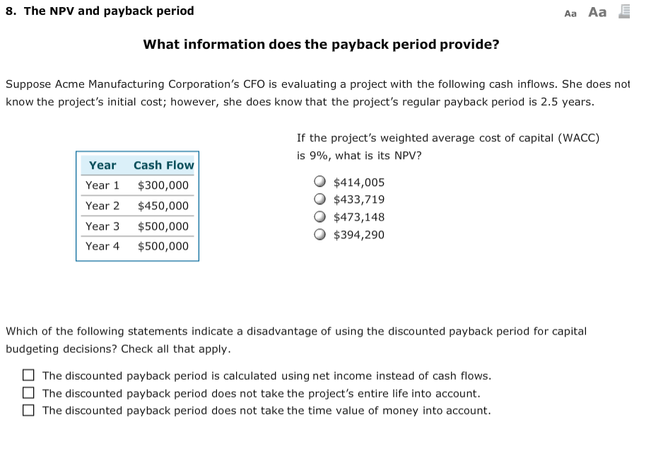 Solved What Information Does The Payback Period Provide