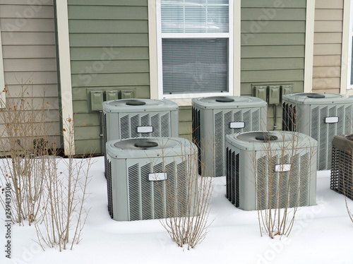 Air Conditioner Compressors Outside The Apartment Building In