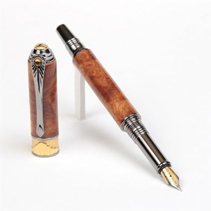 Art Deco Fountain Pen Black Titanium And 22kt Gold Amboyna