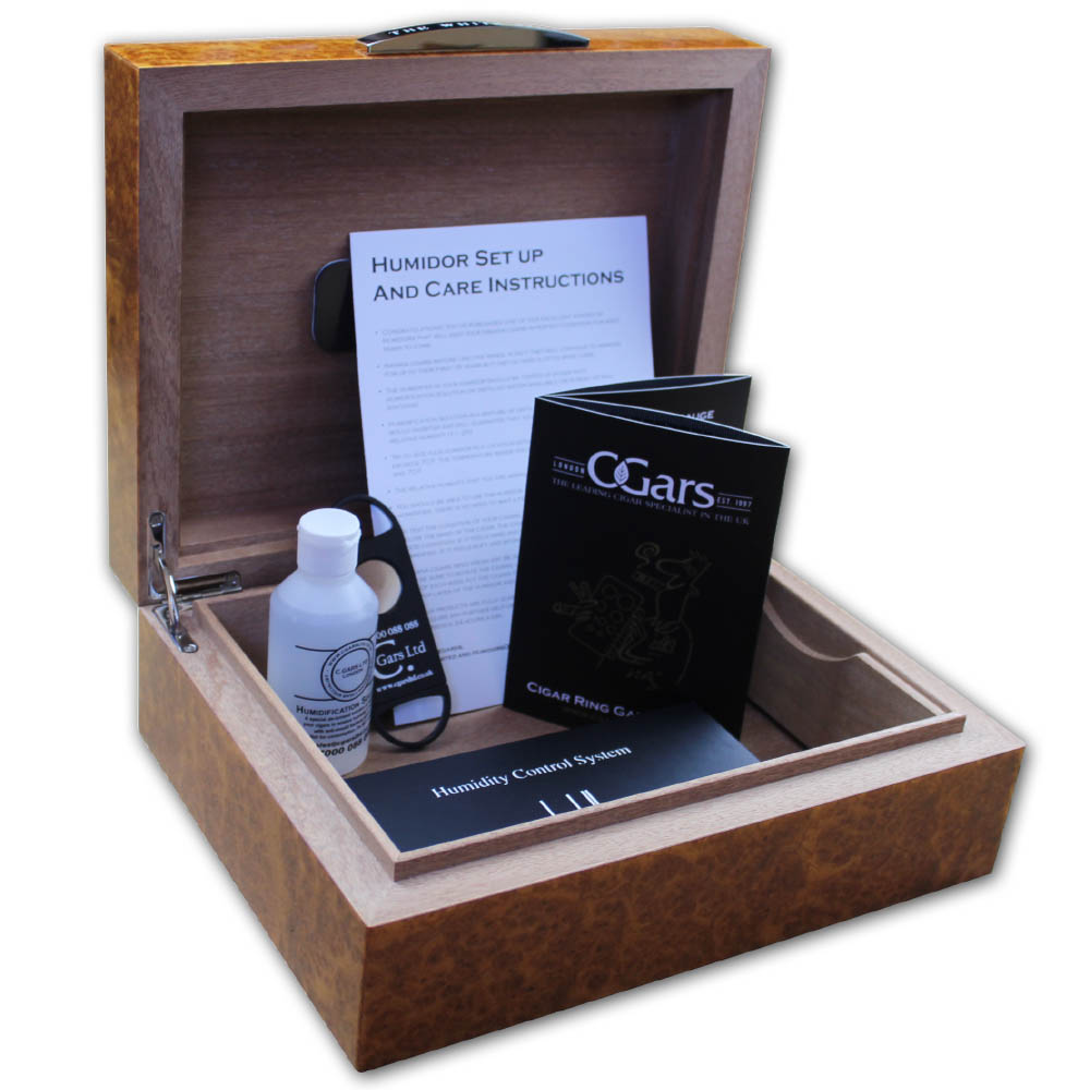 James J Fox White Spot Amboyna Burl Humidor For 50 Cigars