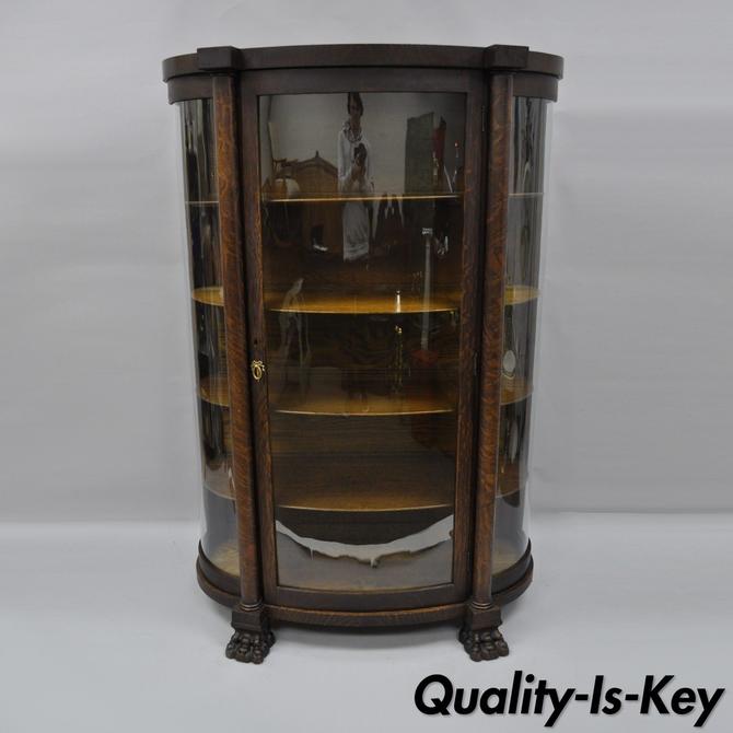 Antique Bow Front Claw Foot Oak China Curio Cabinet 33199182