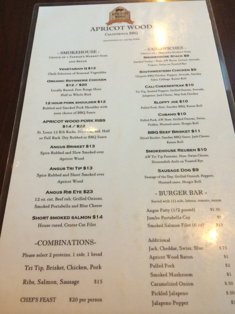 Apricot wood smokehouse menu.