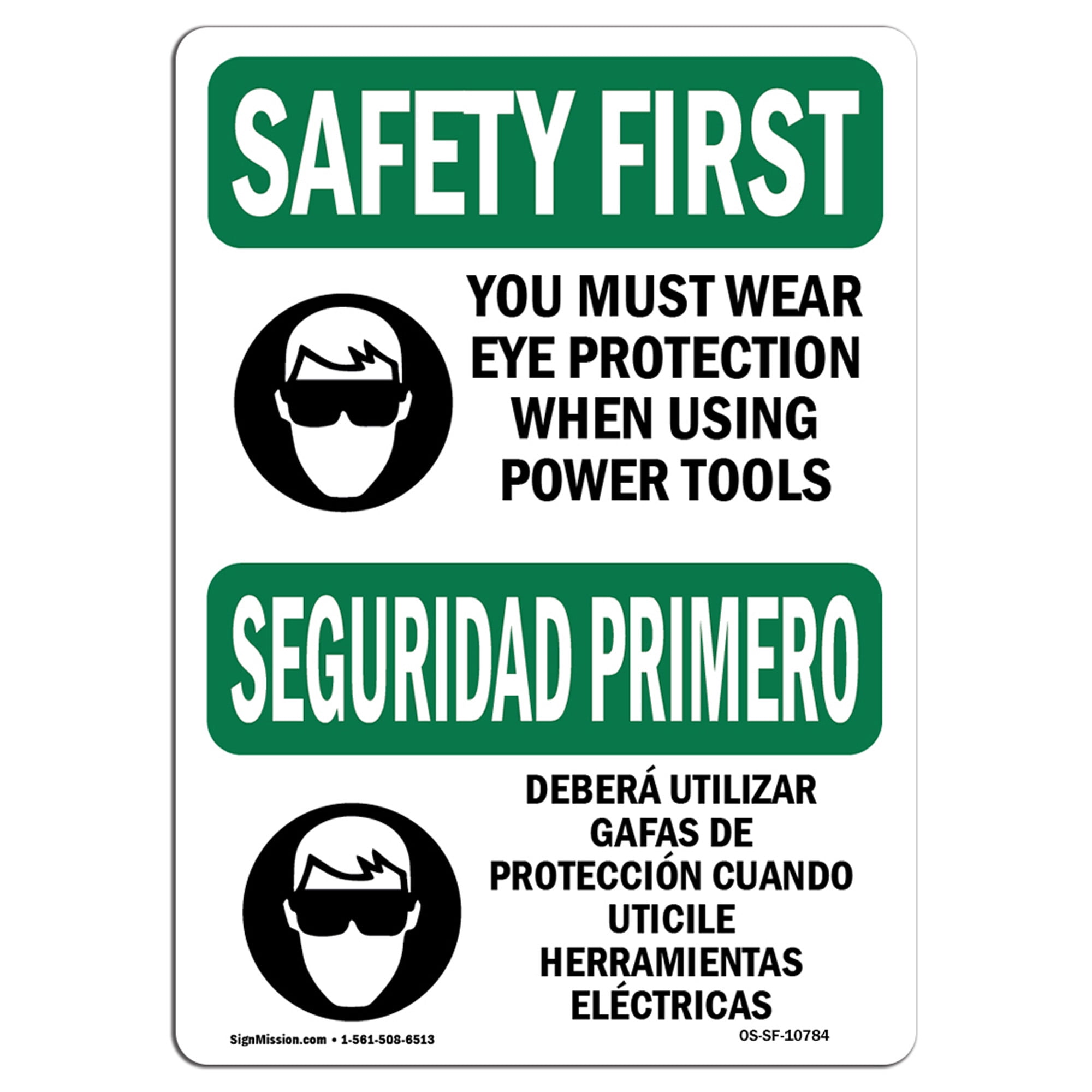 Osha Safety First Sign Eye Protection Power Tools Bilingual