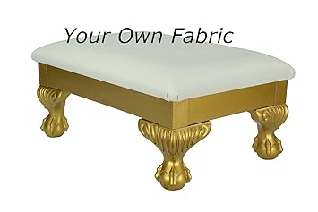 Gold Large Foot Stool With Small Ball And Claw Legs Upholstered