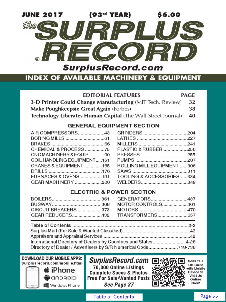 June 2017 Surplus Record Machinery Equipment Directory