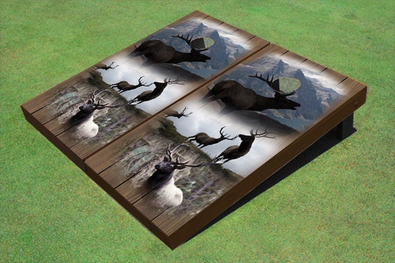 Custom Corn Hole Elks And Mountian Scene American Flag Etsy