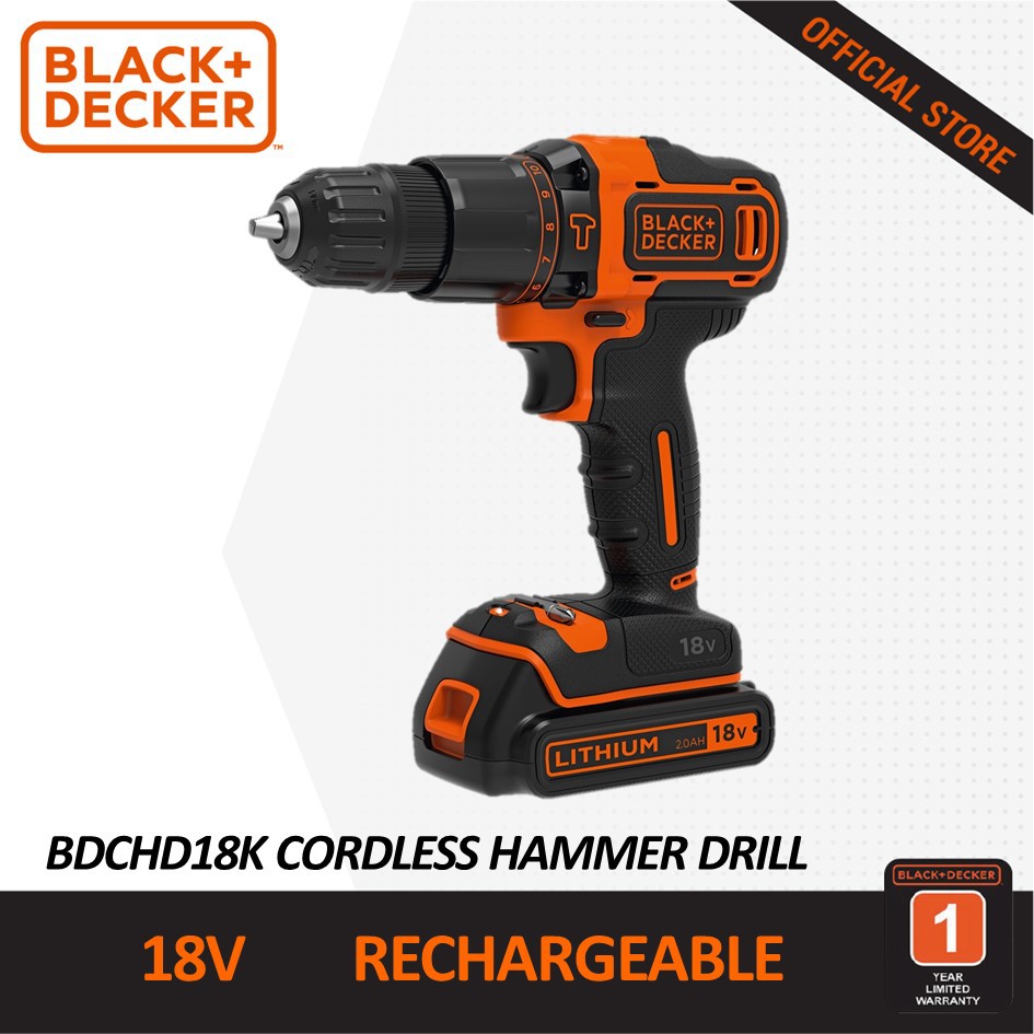 Black Decker 18v Li Ion Cordless Drill Driver Kit Box With Bits