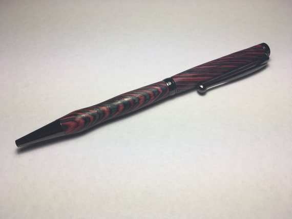Turned Wood Pen Red Black Night Fire Dyed Wood Slimline Etsy