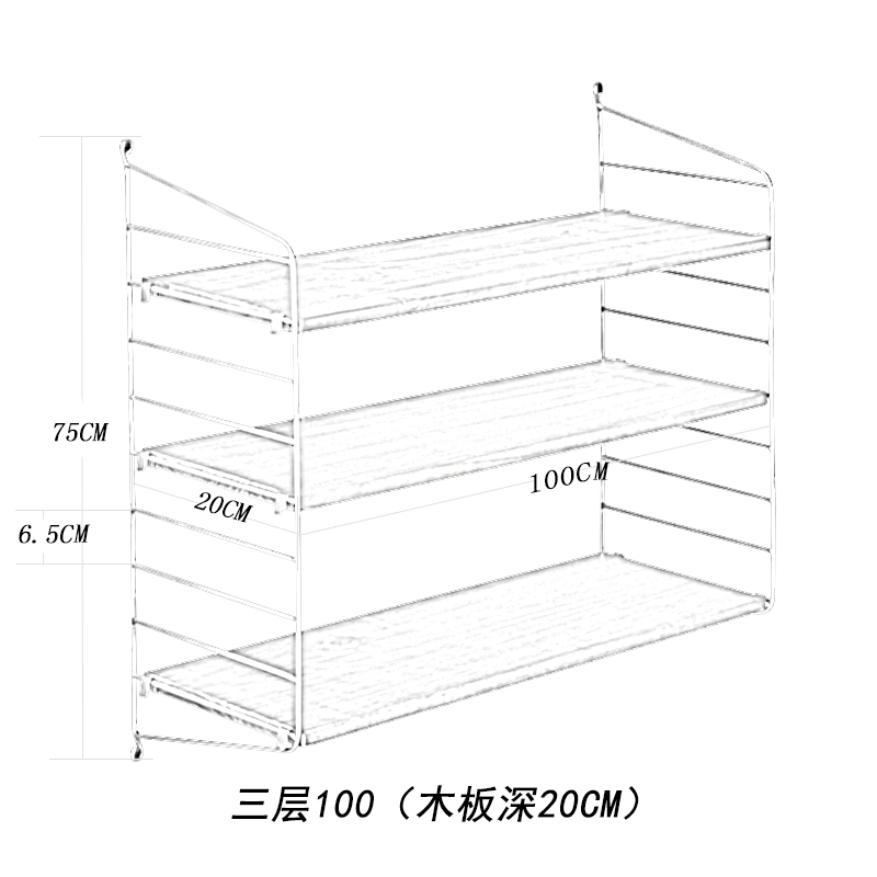 String Shelf In White With Grey Sides Depth 20cm