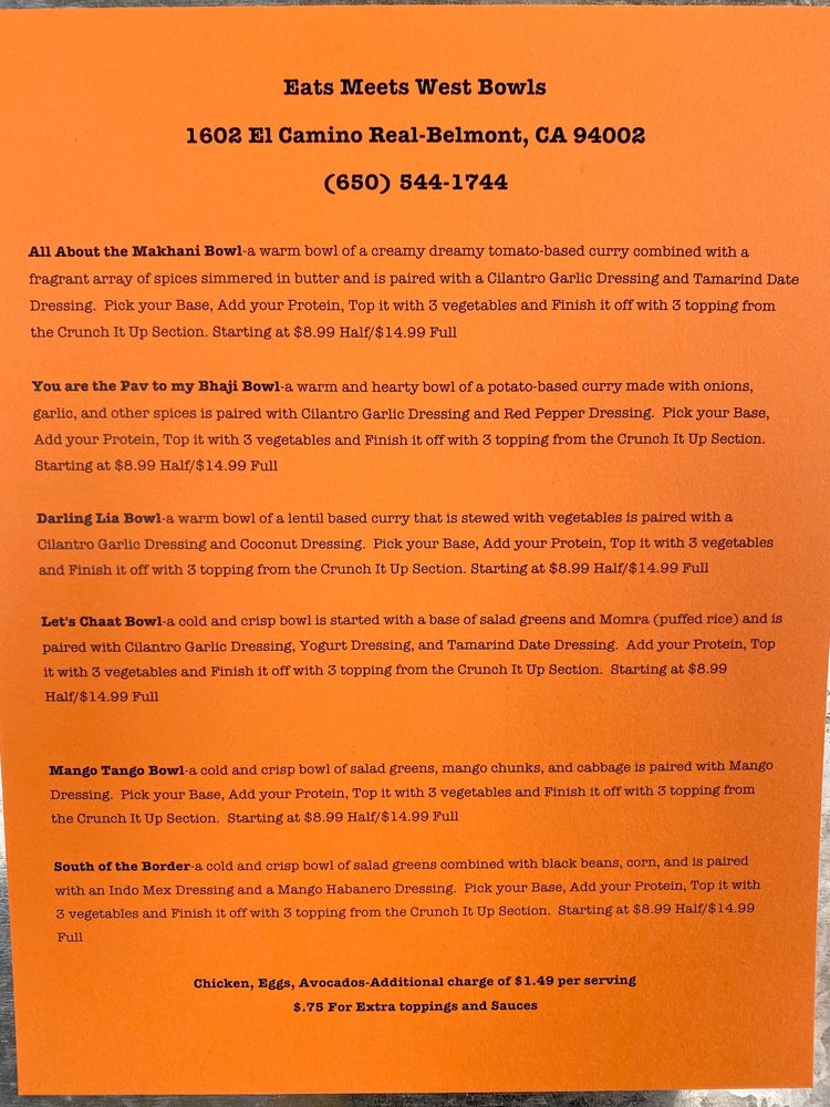 Online Menu Of Eats Meets West Bowls Restaurant Belmont