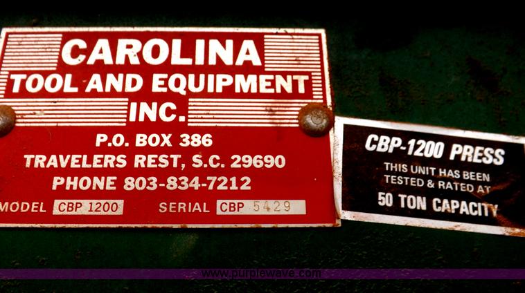 Carolina Tool Model Cbp 1200 50 Ton Capacity H Frame Hydraulic