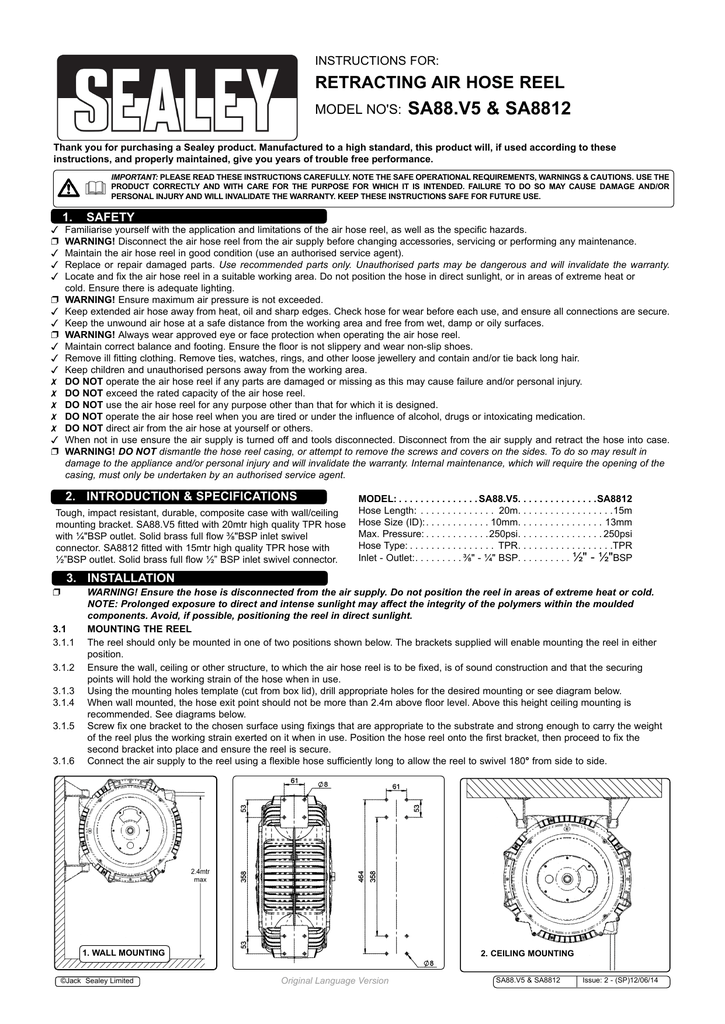 Sa88 V5 Amp Sa8812 Retracting Air Hose Reel Model No S Manualzz