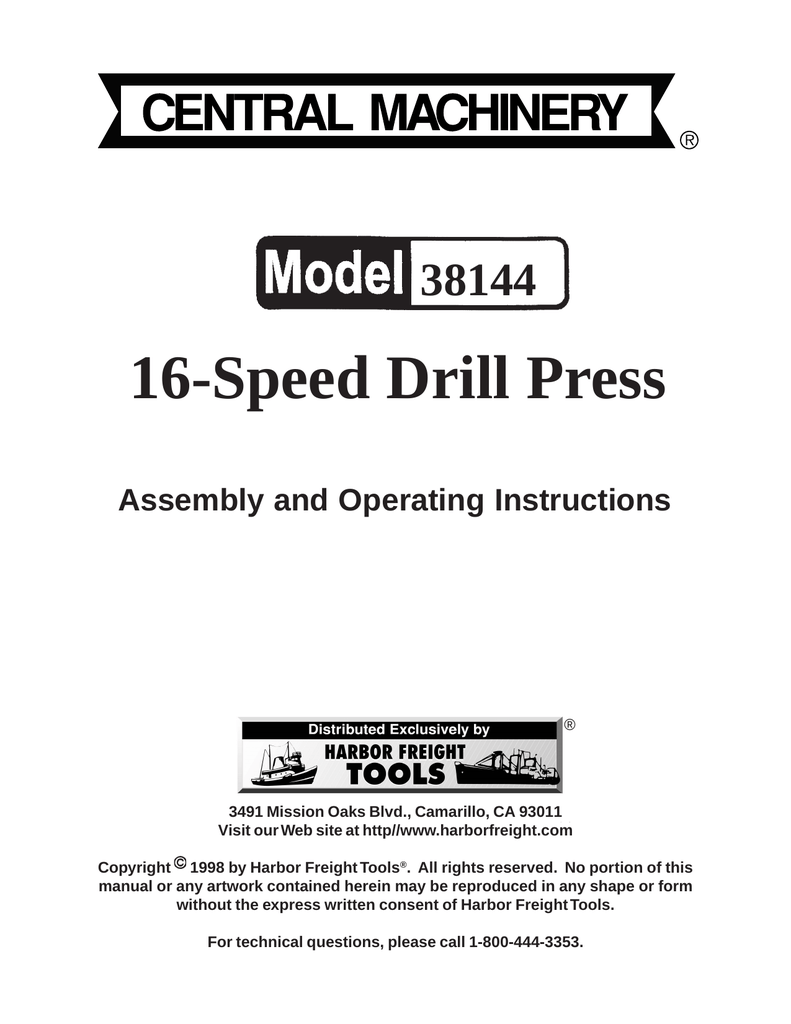 Harbor Freight 1 2 Hp Mortising Machine Product Manual 35570