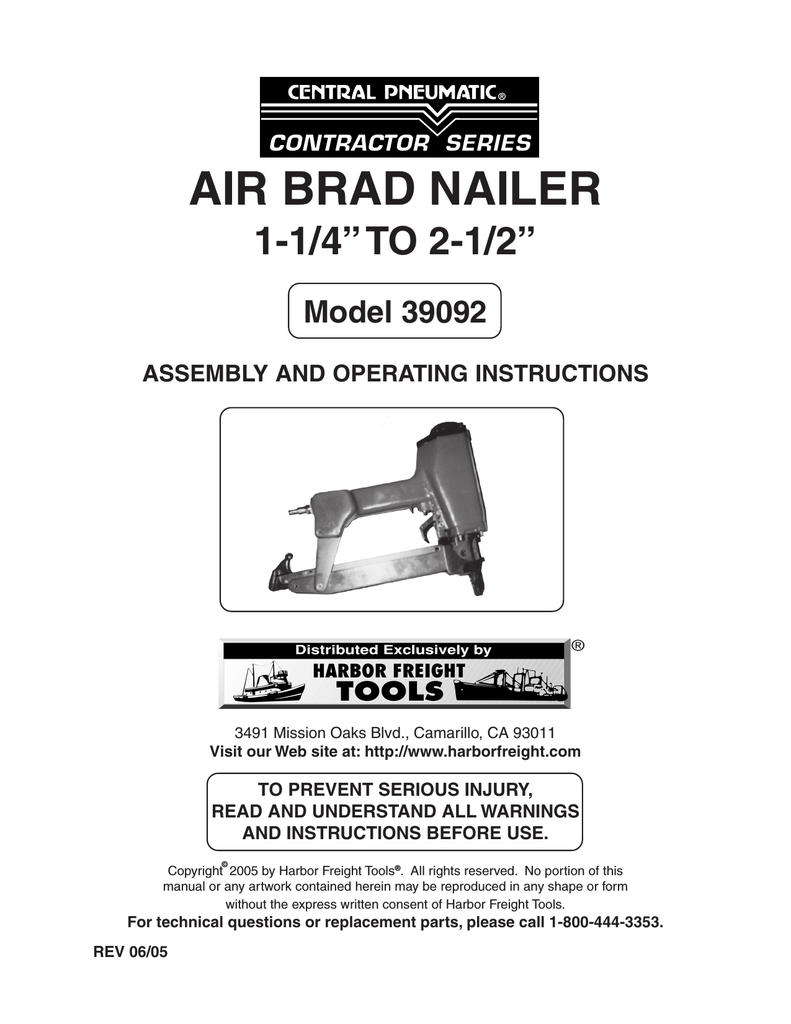 Central Pneumatic Nail Gun 39092 Users Manual