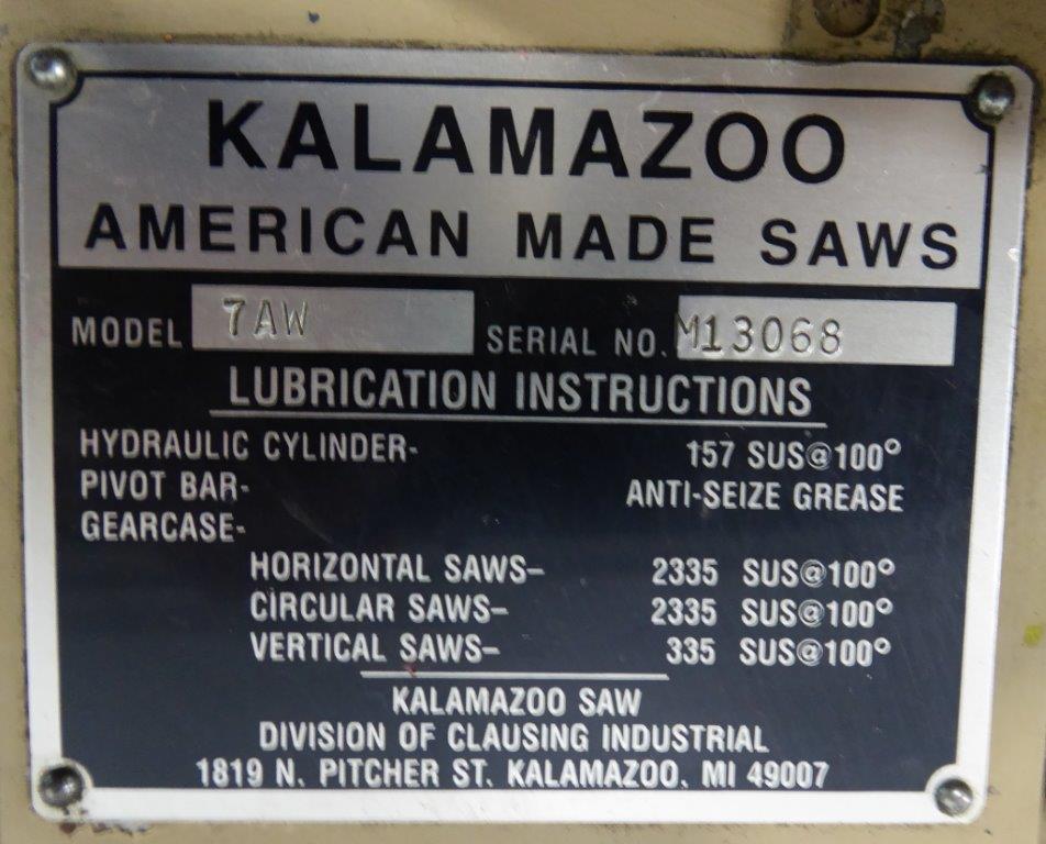 Kalamazoo 7aw Saws Band Horizontal Machine Hub
