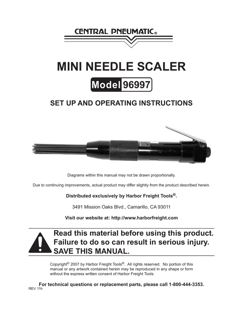 Harbor Freight Tools Compact Air Needle Scaler Product Manual