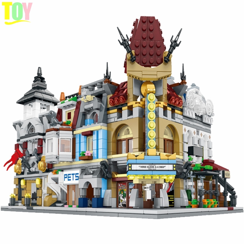 1363pcs City Street View Building Blocks Paris Self Theater Shop