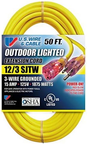 Us Wire 74050 50 Foot Heavy Duty Lighted Plug Extension Cord