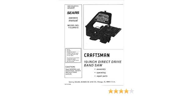 Questions answers unit. Page 1 save this manual for future reference ars owners manual model no. Search results for craftsman 10 direct drive band saw manual did you mean. Donald for model number 113244512.