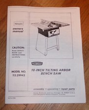 Craftsman 113 29943 10 Tilting Arbor Bench Saw Operator Parts
