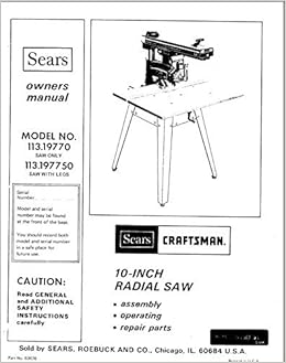 Sears Craftsman Radial Arm Saw Manual And 50 Similar Items