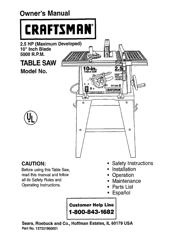 User Manual Craftsman Radial Arm Saw