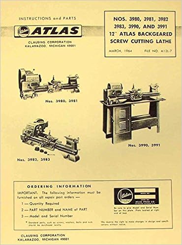 Atlas Craftsman 12 Metal Lathe 3980 3981 3982 3983 3990 3991