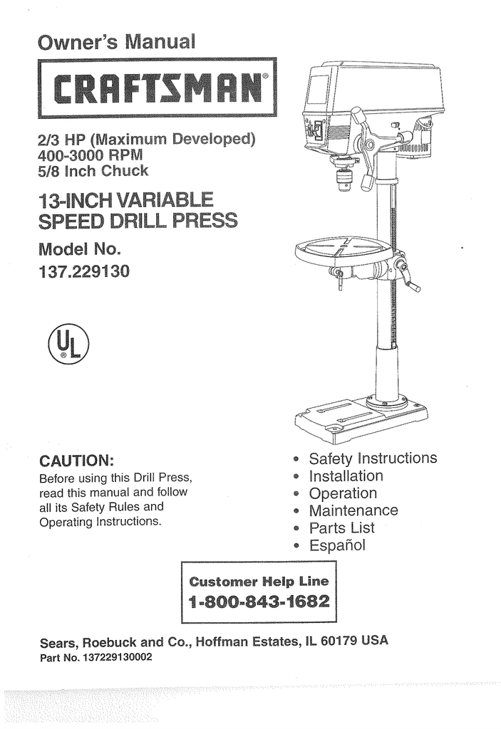 Craftsman 137229200 User Manual 20 Drill Press Manuals And Guides