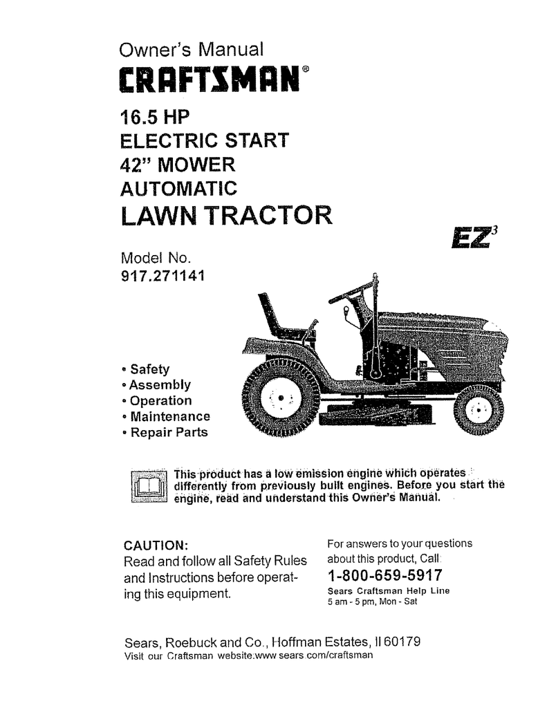 Craftsman Ez3 917 271141 Owner S Manual Manualzz