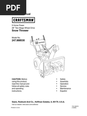 Craftsman Snowblower 247 888530 Owners Manual Nut Hardware Screw