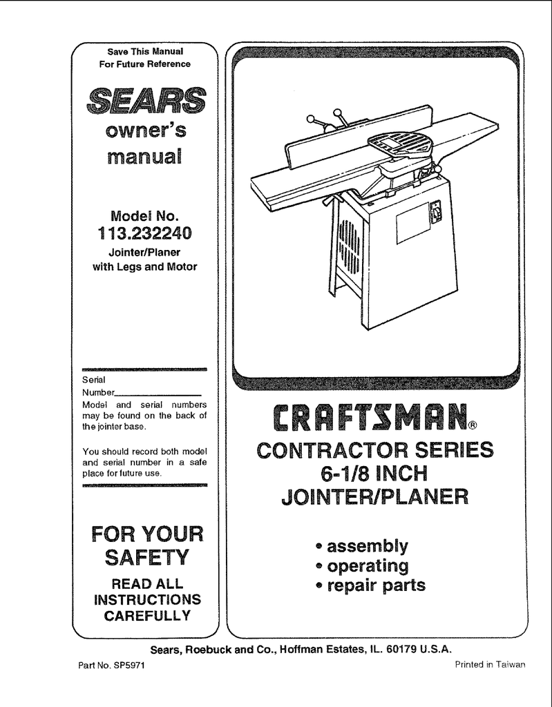Craftsman 113 232240 Specifications Manualzz