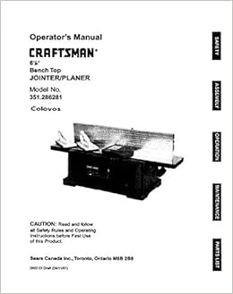 Craftsman 351 286281 Jointer Planer Owners Instruction Manual