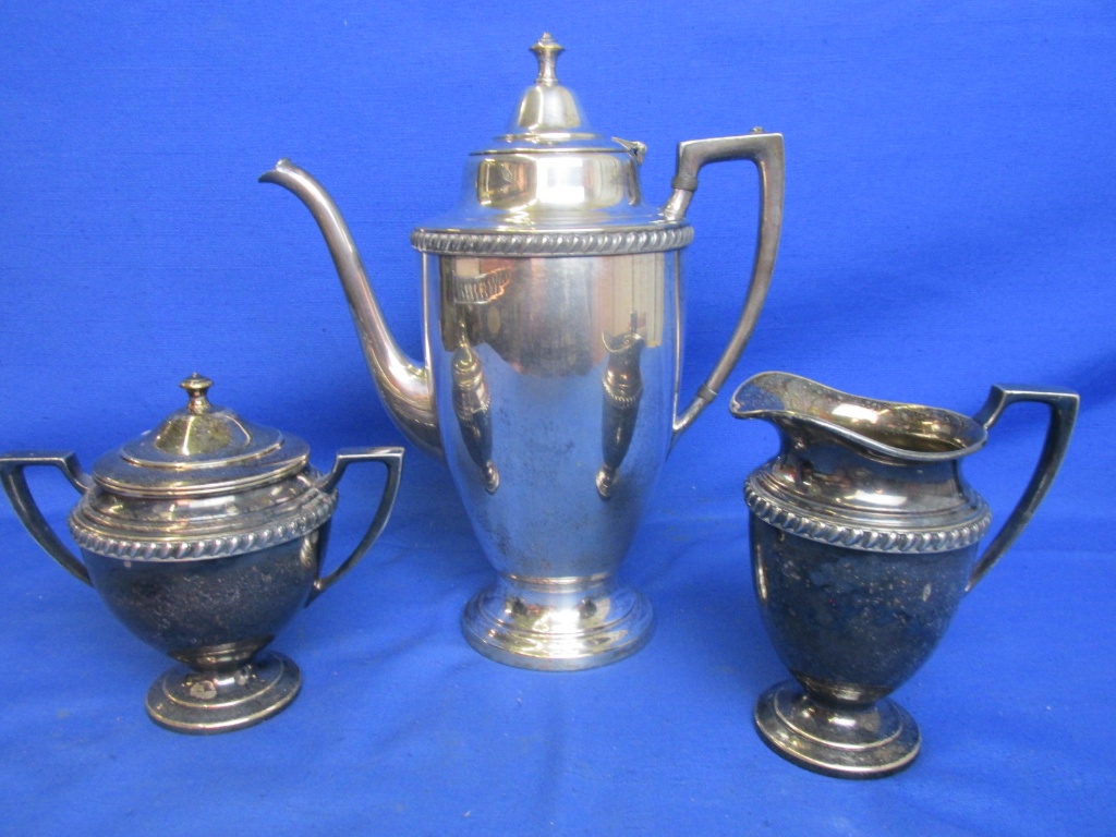Vintage Coffee Pot Sugar Bowl Cream Pitcher Crescent Silver