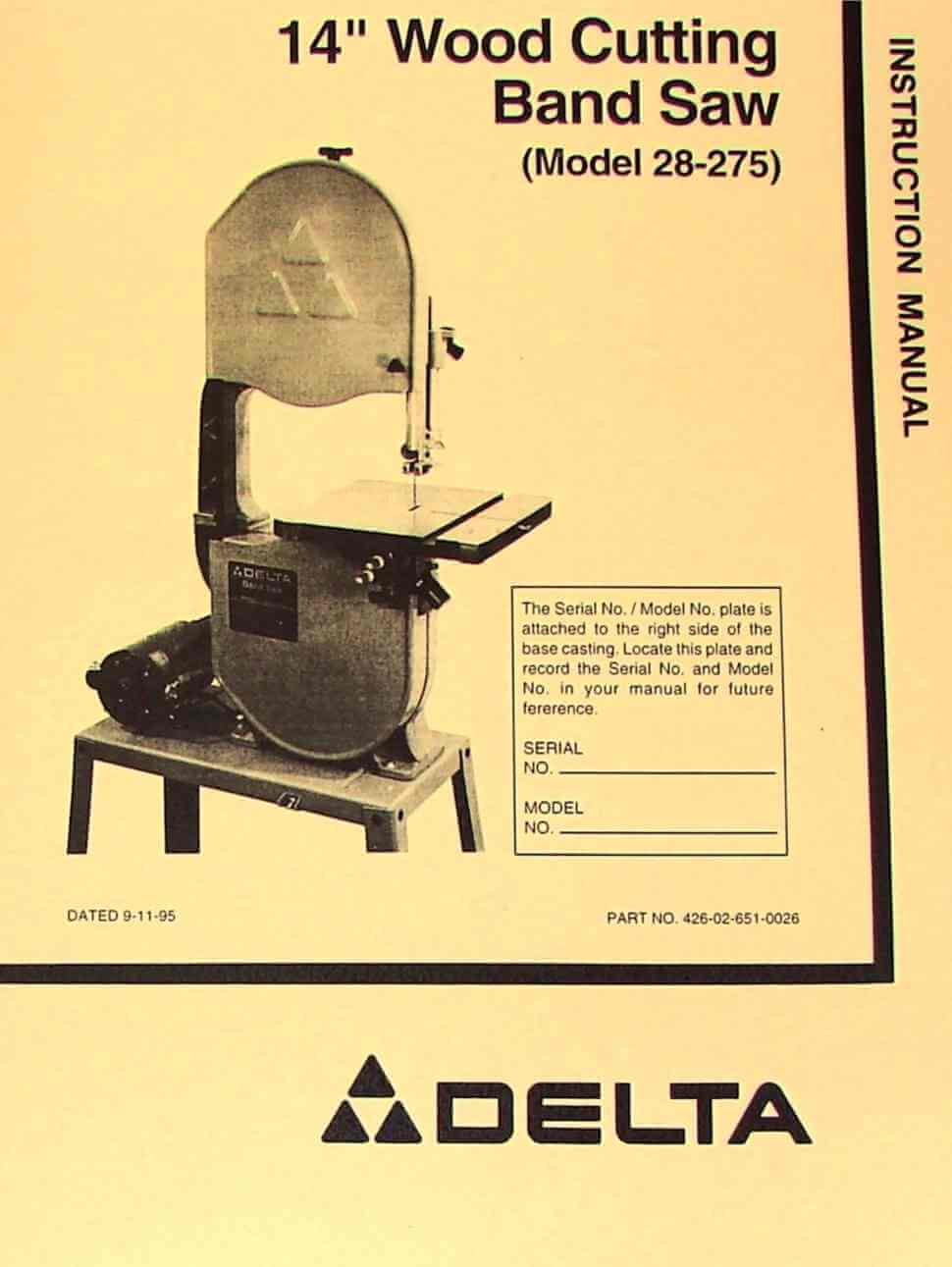 Delta 16 Bandsaw Instruction Manual Model 28 560