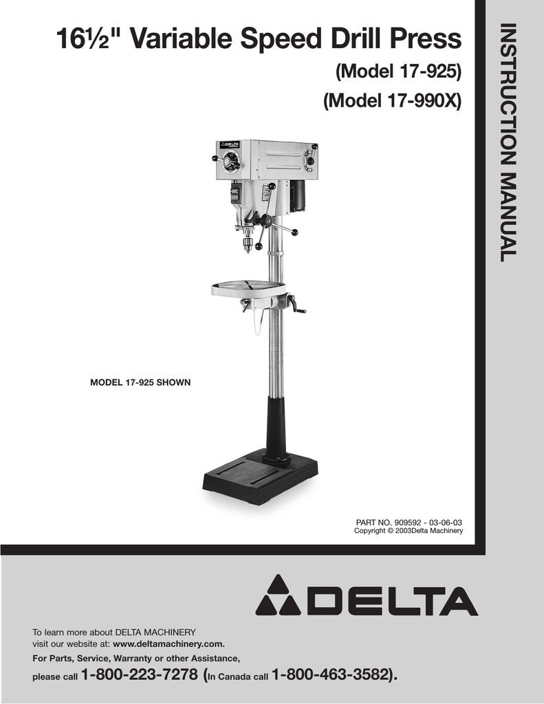 Http Www Mikestools Com Download Delta Drill Press Owners Manuals Delta 17 925 Pdf