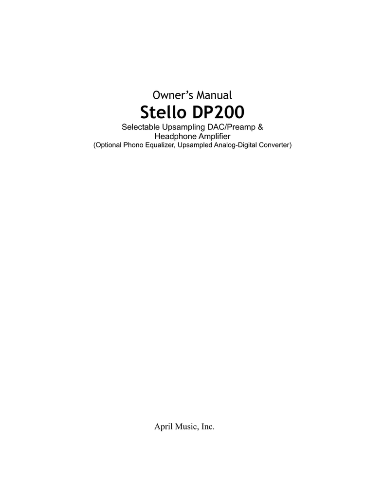 April Music Stello Dp200 Owner S Manual Manualzz