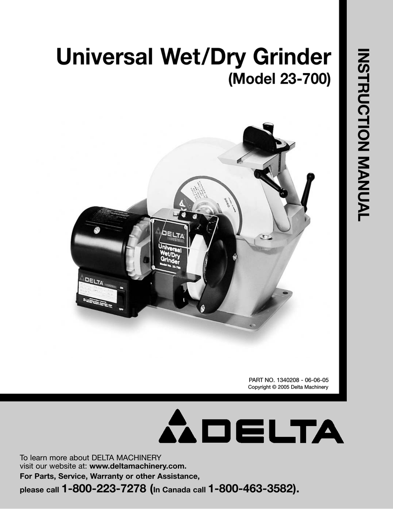 Delta Milwaukee Carbide Tool Grinder Instructions Parts Manual