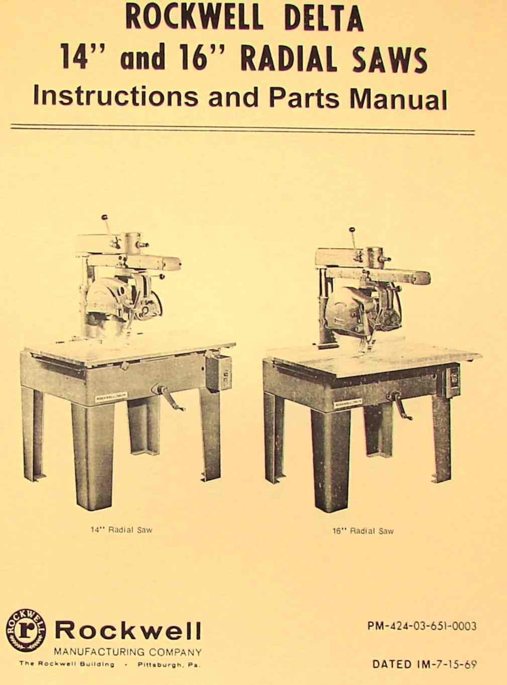 Please see the shipping tab for more info about timing. Or available for us to order into stock and ship to you. Delta super 900 radial saw operators guide. Delta radial arm saw parts that fit straight from the manufacturer.