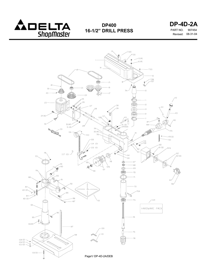 Dp 4d 2a Dp400 16 1 2 Drill Press Part No Manualzz
